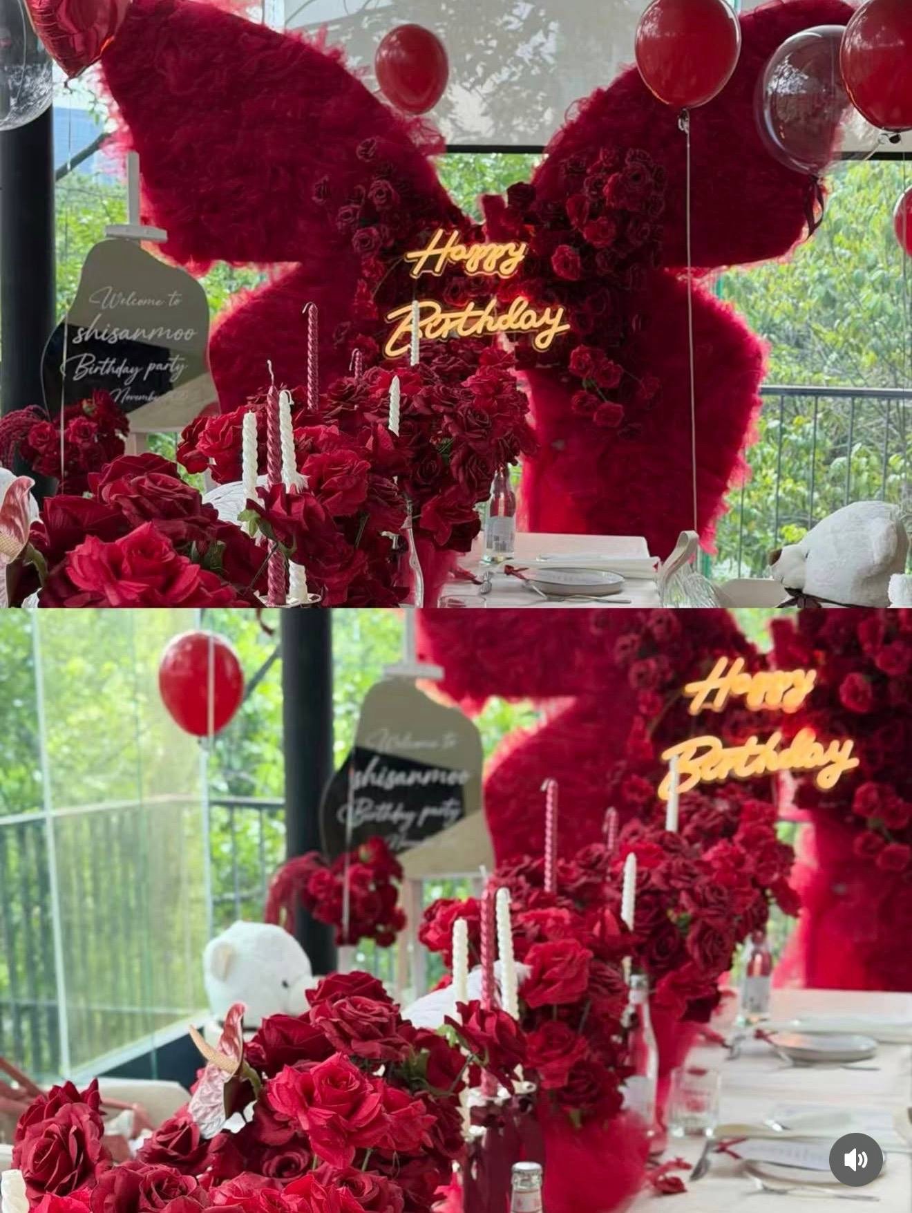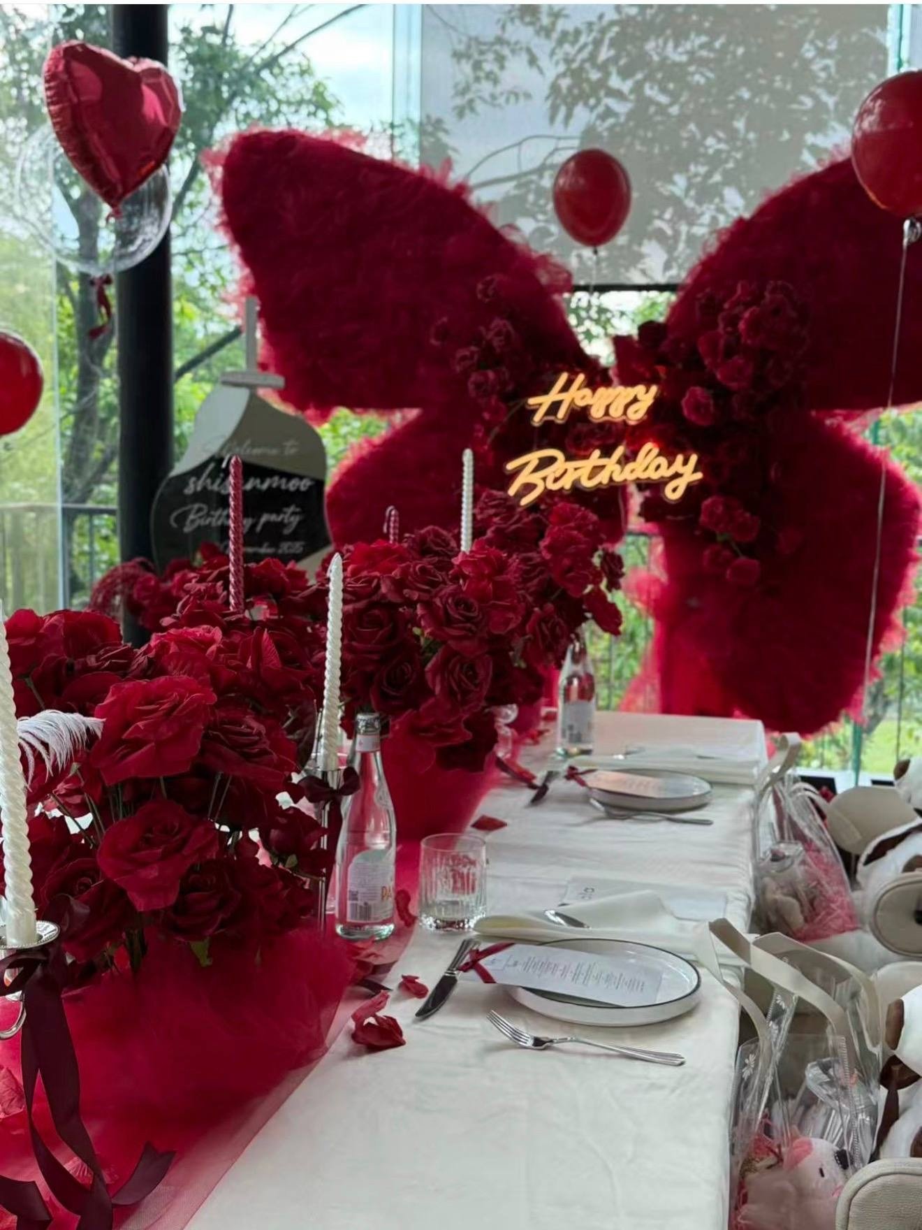 -7ft Red Butterfly Backdrop with gauze and artificial flowers